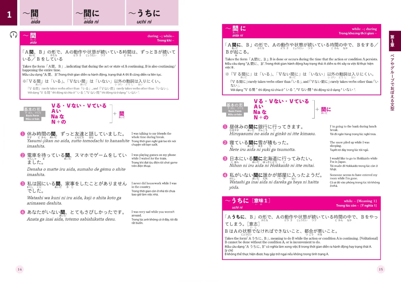The book is mainly written in English and Vietnamese, so the explanations are easy to understand. One drawback is that many examples of different grammar patterns are listed with explanations of the differences, but the example sentences themselves and how they differ are only shown in Japanese.